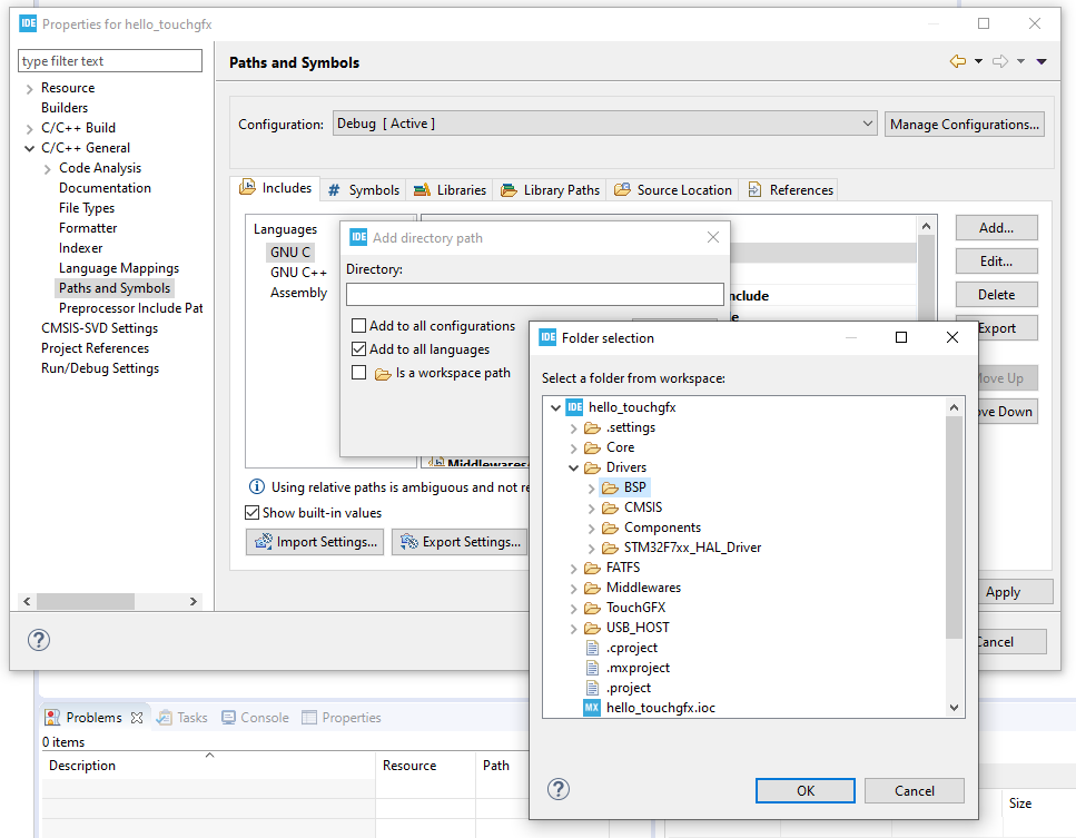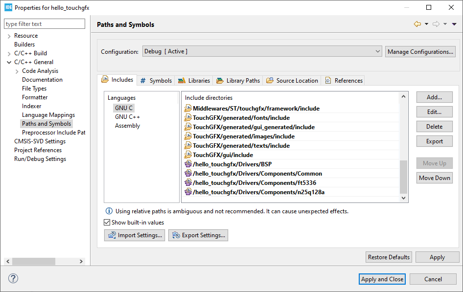 해당 파일은 TouchGFX 디자이너에서 빈프로젝트를 생성하면 얻을 수 있음. 추가한 다음 C++ 빌드 옵션에 해당 디렉토리 추가.