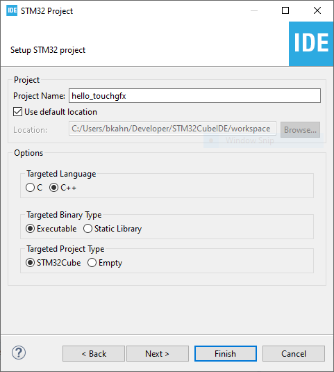 보드를 구입한 본래의 목적이었던 TouchGFX를 사용하기 위해서 프로젝트 생성. 여러가지 유투브나 문서를 찾아봤지만, 한번에 매끄럽게 되는건 없는듯하다. ST에서 TouchGFX를 인수하였다곤 하지만 하나의 개발도구로 합치는데는 꽤 시간이 걸릴듯 한데… 뭐 그거야 나중 일이고.. 일단은 프로젝트를 생성하고 개발하기 위한 준비단계까지는 되어야 하니….