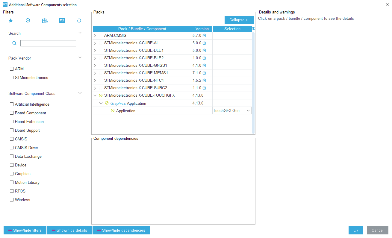 이건 먼저, Additional Software를 클릭하고, 다음의 화면과 같이 TouchGFX를 선택.