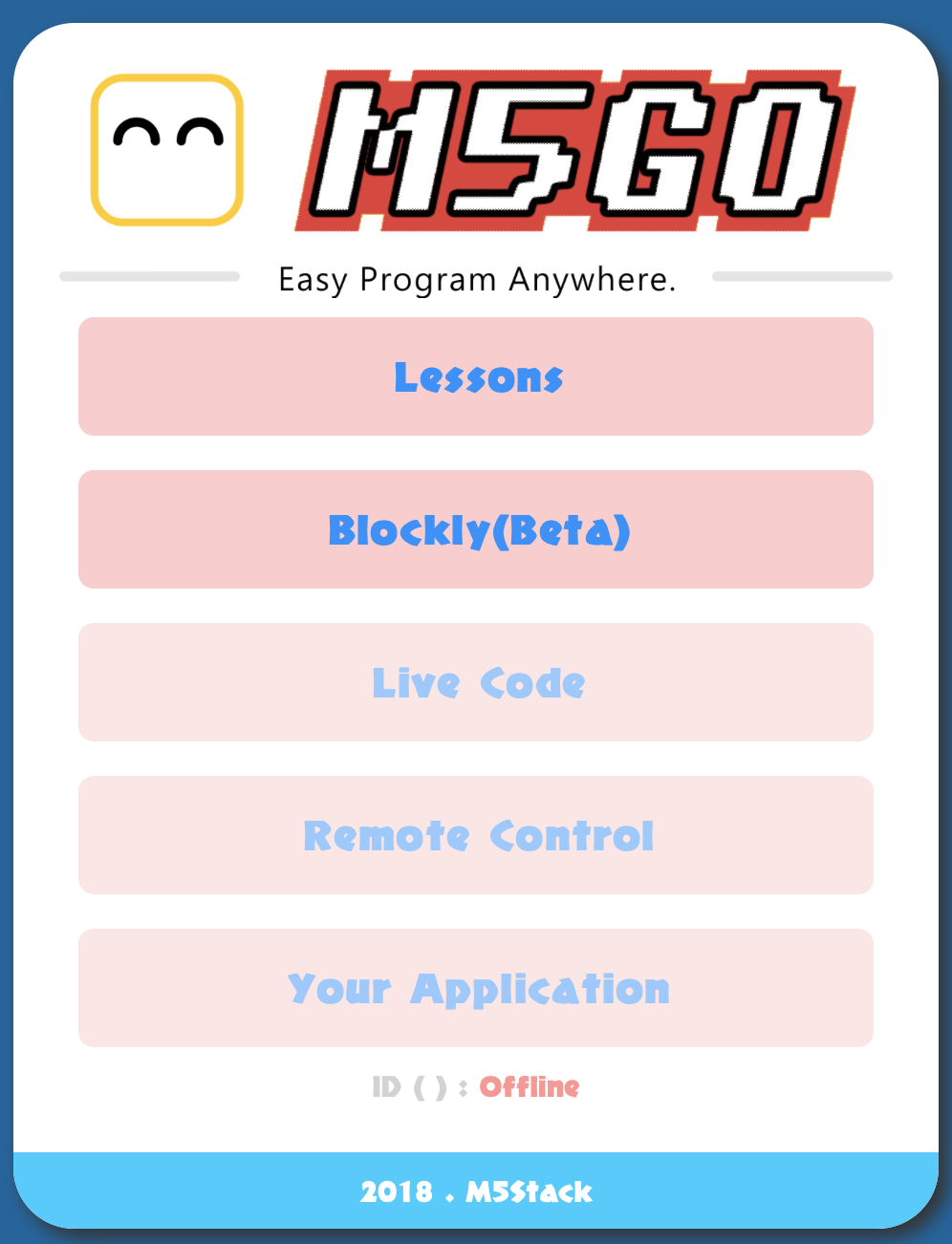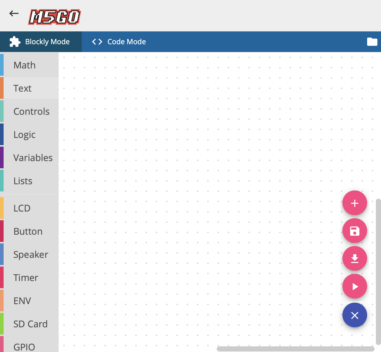 io.m5go.com 웹페이지를 이용하여 온라인으로 블럭코딩 및 코딩을 하여 M5Stack를 제어할 수 있다. WiFi가 지원된다는 이점을 활용한 것 같다.
