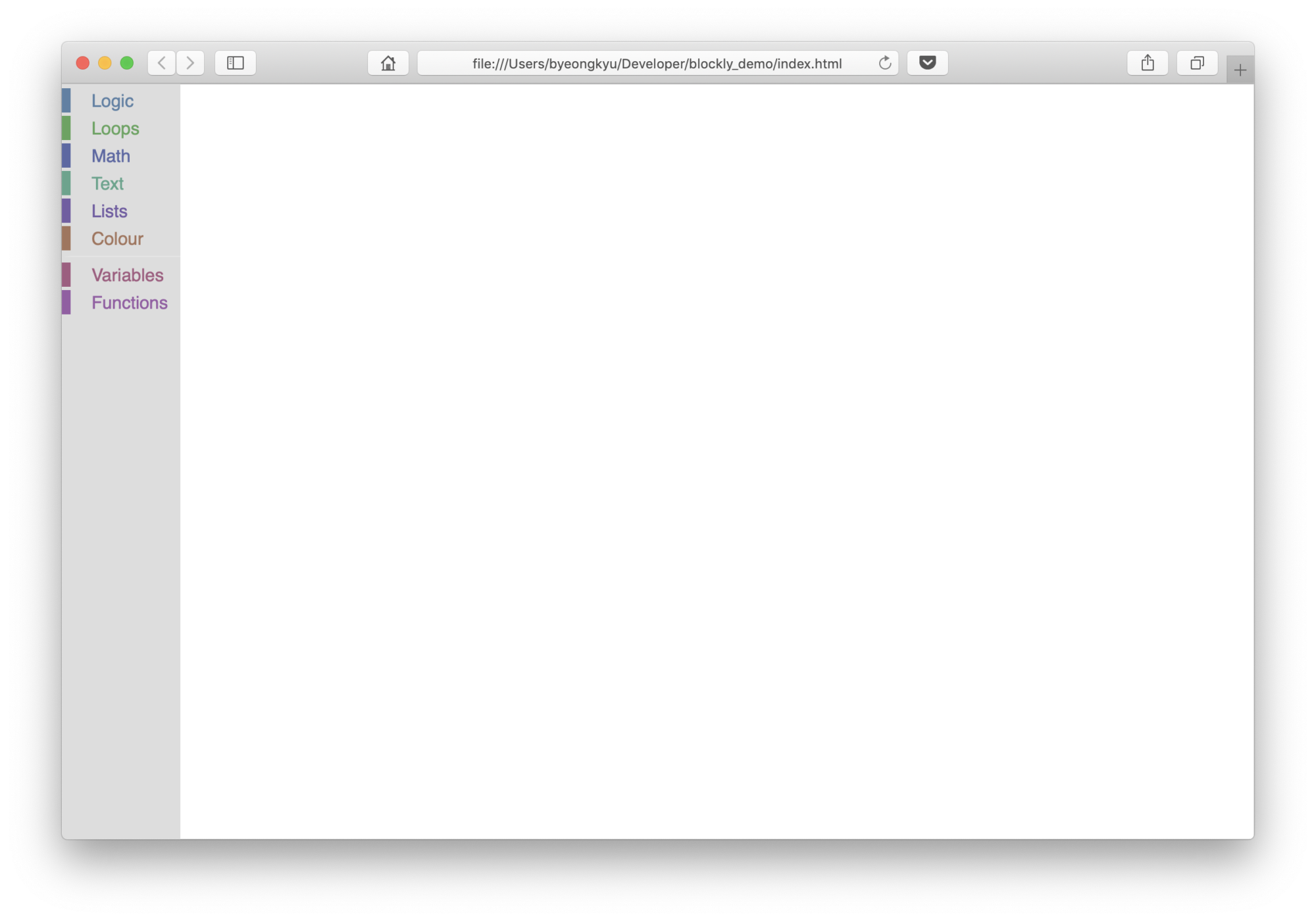 먼저 작업할 디렉토리를 생성한다. 여기에선 편의상 blockly_demo란 디렉토리를 사용한다.