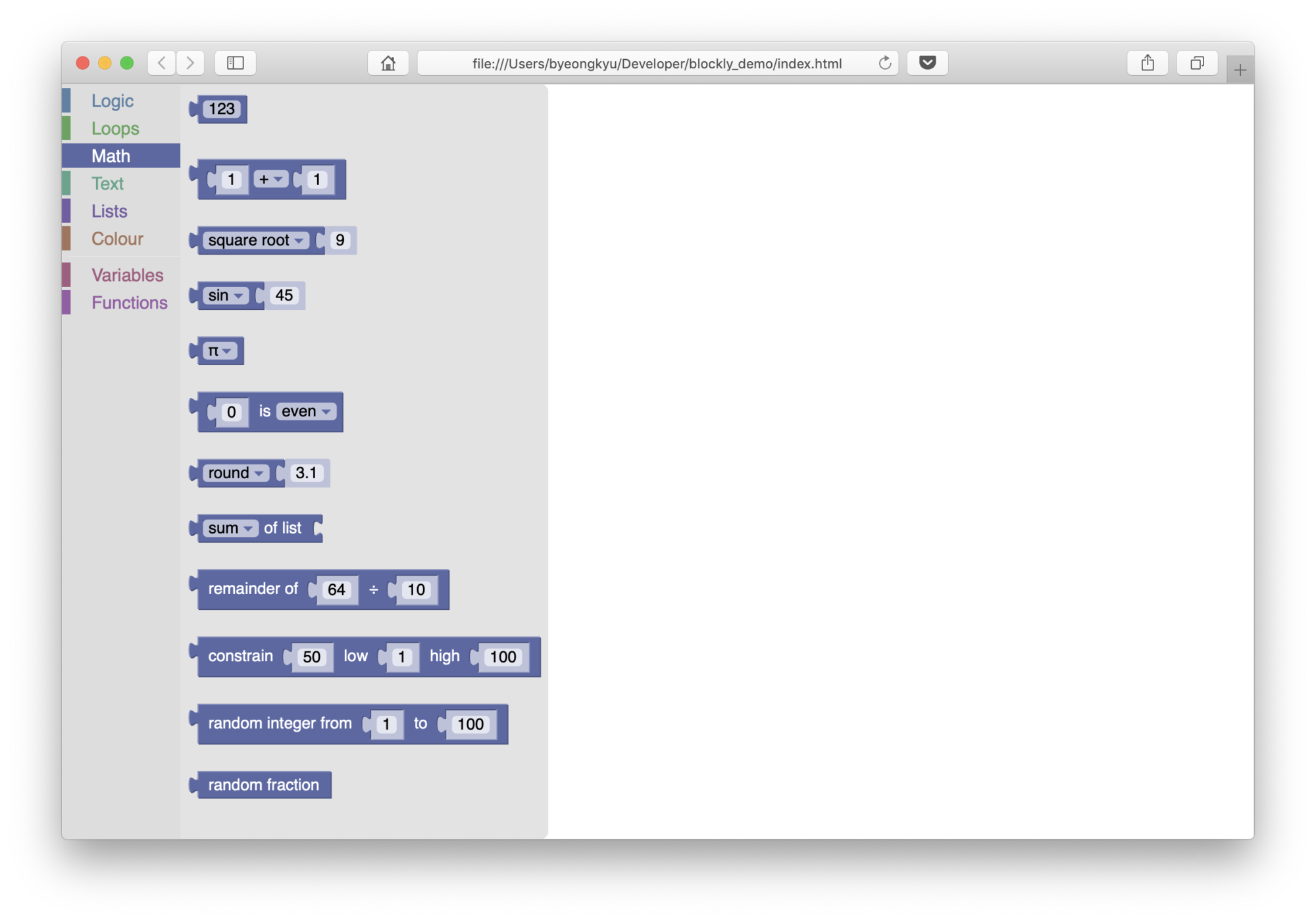 Blockly가 잘 로딩되어 실행됨을 볼수 있다.