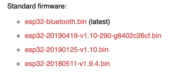 $ esptool.py --chip esp32 -p /dev/tty.SLAB_USBtoUART write_flash -z 0x1000 esp32-bluetooth.bin
