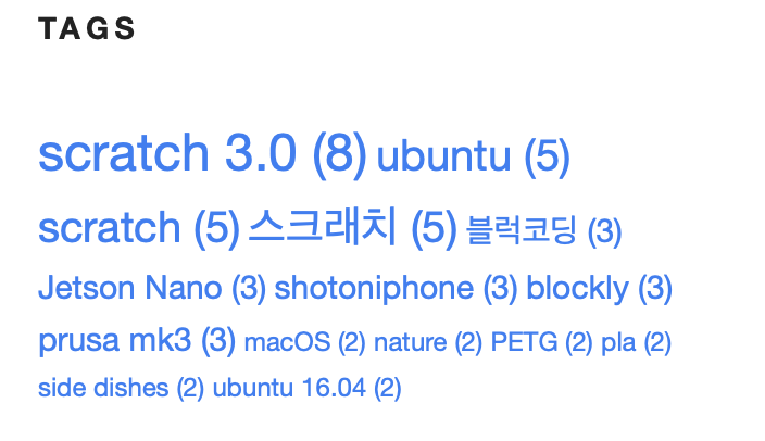 기본으로 제공되는 Tags 위젯은 사용된 Tag를 순서대로 모두다 보여줘서 좀 번거로운 면이 있다. 사용 빈도를 반영하여 많이 사용된 Tag를 크게 보여주고, 또 원하는 순위까지만 보여주는 것이 좀 괜찮을 것 같은데, 이를 위해선 해당 기능을 포함하는 플러그인을 설치해서 사용하거나, 간단히 functions.php를 수정하면 된다.